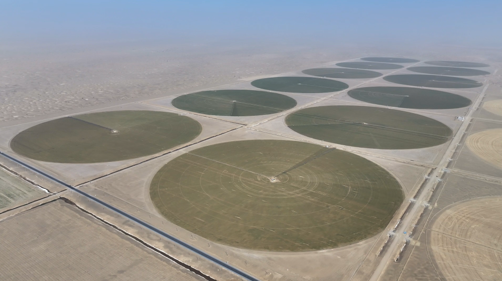 解读:对比2025年3月和2026年3月的两张卫星影像,清晰显示了一个个与沙漠形成鲜明对比的绿色“同心圆”如从天降,直观呈现“沙漠变良田”的治理奇迹。