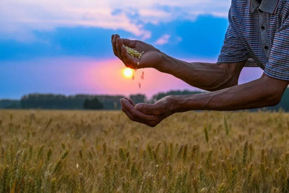 河南省商丘市夏邑县会亭镇贾楼村农民在麦田内查看麦粒饱满程度。新华社发(王高超摄)