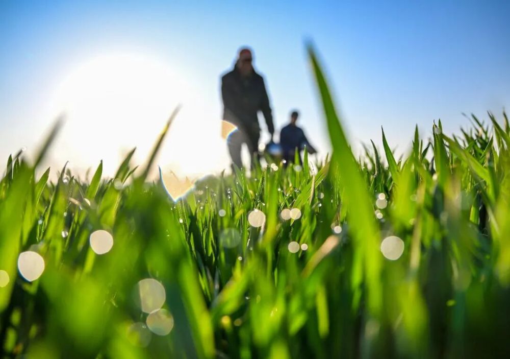 在河南省商丘市夏邑县会亭镇郭吕庄村,村民在麦田里施肥。新华社发(王高超摄)