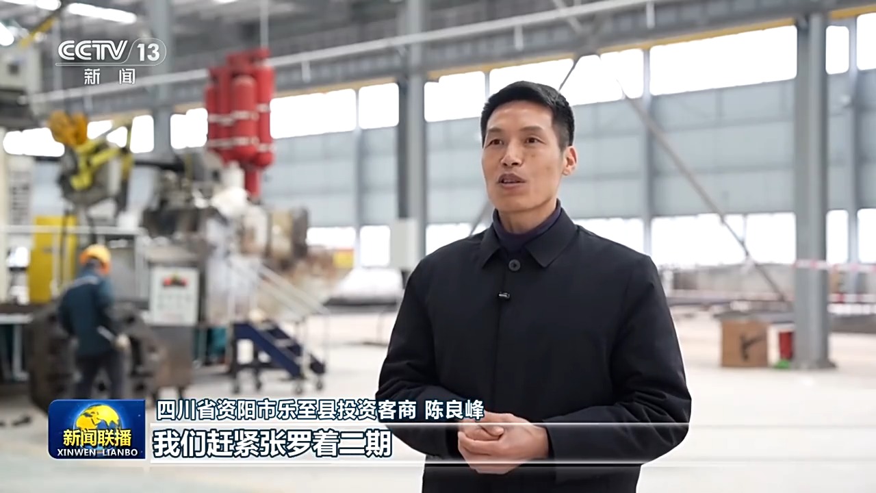 四川省资阳市乐至县投资客商 陈良峰:现在一期(项目)刚运行,我们赶紧张罗着二期,就是要赶在高铁开通之前抢个先机。