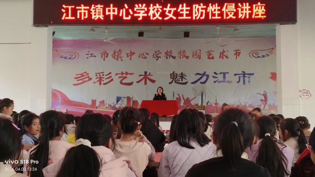 筑牢校园安全防线,提升女生自我保护意识与能力,洪江市江市镇中心学校于4月3日开展女生防性侵专题讲座,全校女生参与学习。