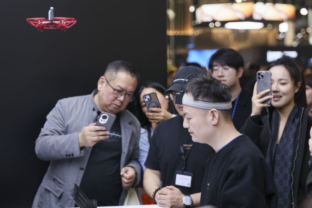 3月12日,在上海新国际博览中心追觅科技展位脑机接口展台,工作人员演示通过脑电波操作无人机。新华社记者王翔 摄以一域之“新”,促全局之“进”